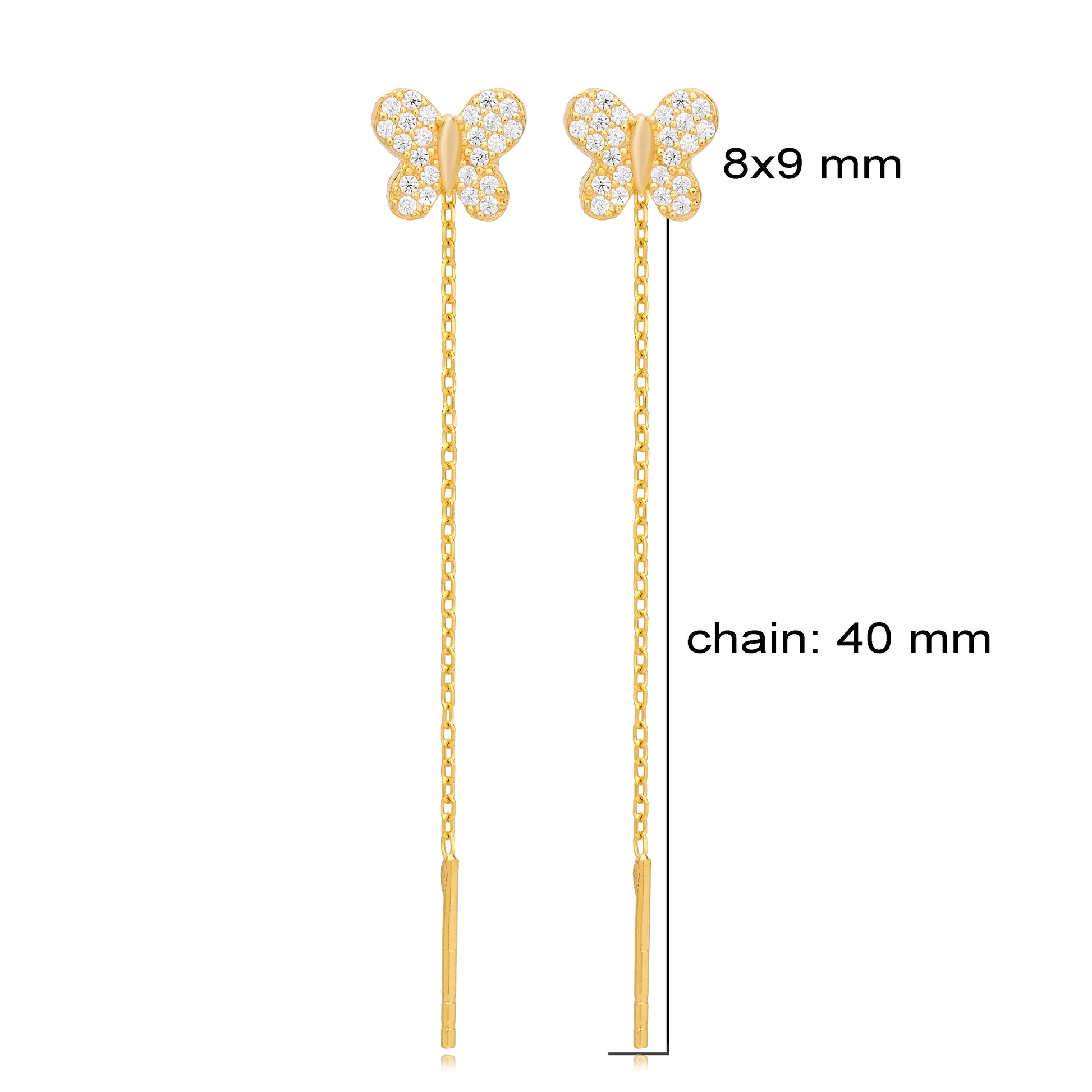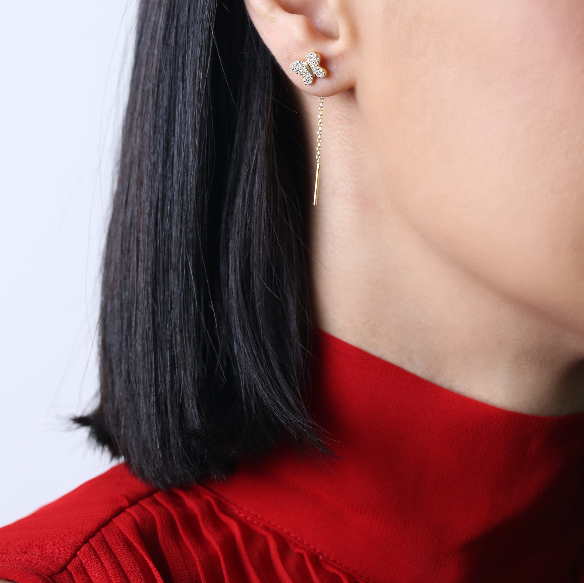 Butterfly Design Zircon Stone Threader Earrings