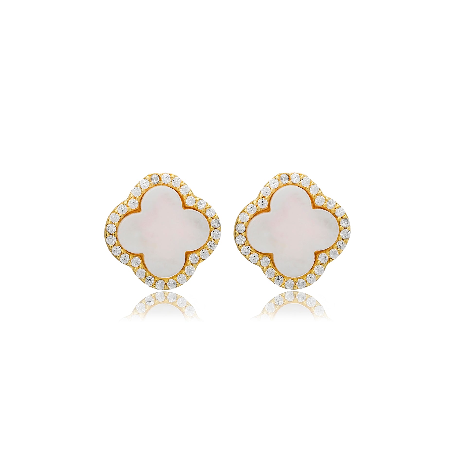 Clover Mother of Pearl Design Zircon Stone Earrings