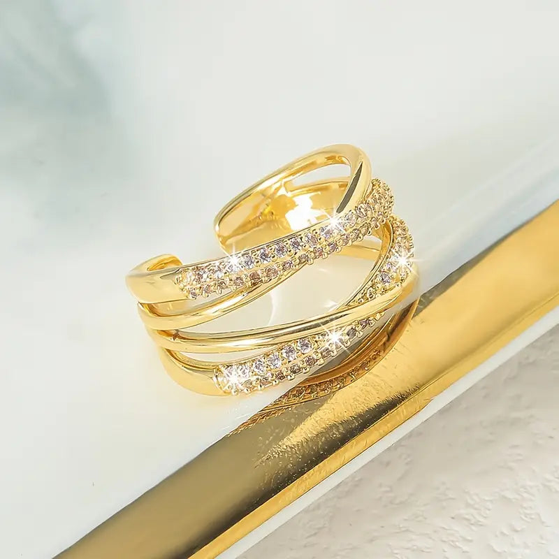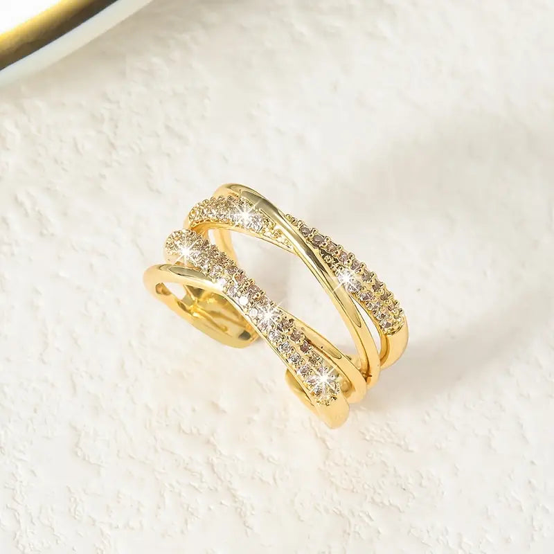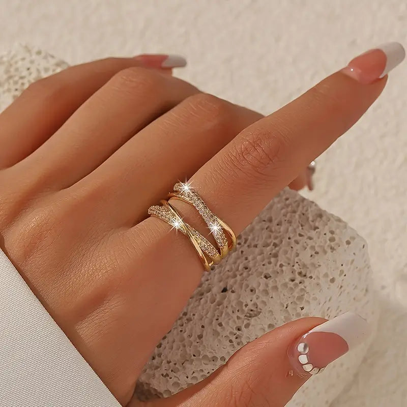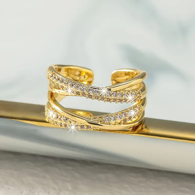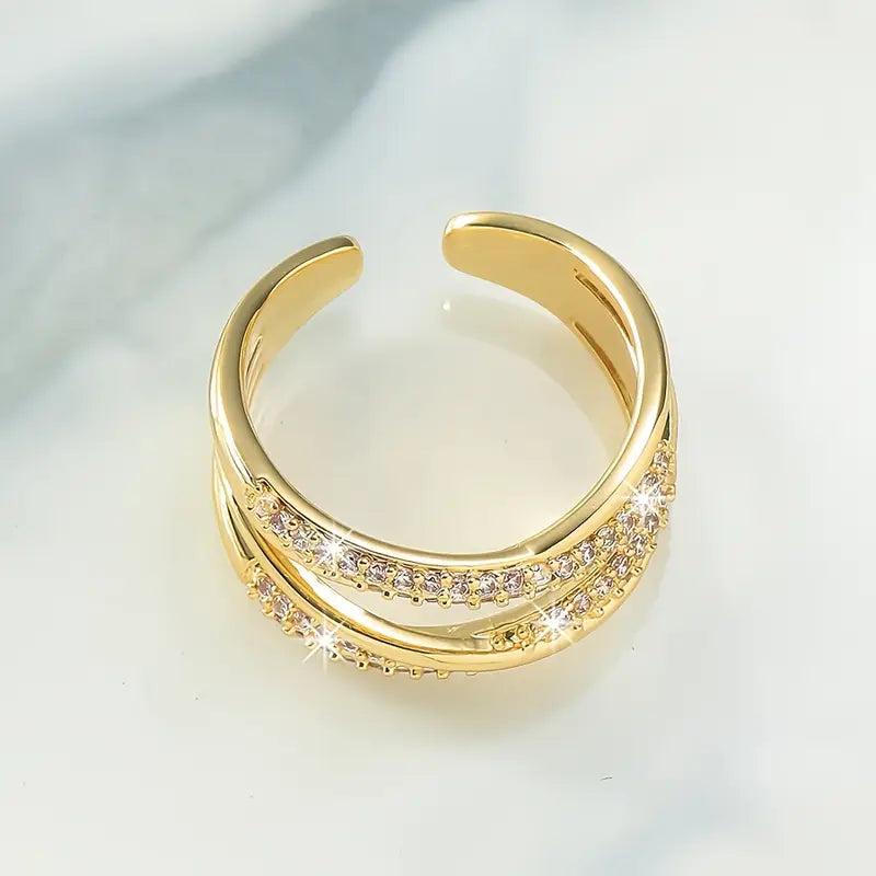 Elegant Adjustable Open Ring with Double Layer Rhinestone Cross Design,